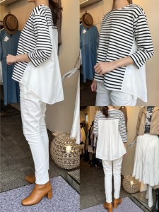 ボーダードッキングトップス¥10890✨ 爽やかなボーダートップスはいかがでしょうか😊🌷 異素材のドッキングデザインになっており、後ろ姿も素敵です✨ ボーダードッキングトップス¥10890 2022年3月13日