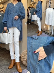 トップス¥16280✨ デニム風なのにサラサラ素材✨ 肌触りの良いトップスはいかがでしょうか💕 後ろにかけて丈が長くなっており、ヒップまわりをすっぽりカバーしてくれます🌸 トップス¥16280 2022年3月13日