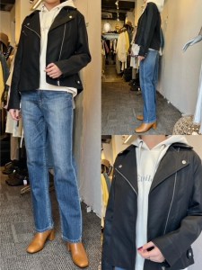 ライダースジャケット¥6930✨ 一枚持っているととっても便利なライダースジャケット❣️ 合皮なので、お天気の悪い日も気兼ねなく着ていただけます✨ インナー次第でロングシーズン着られますよ😊🌸 ライダースジャケット¥6930 2022年3月13日