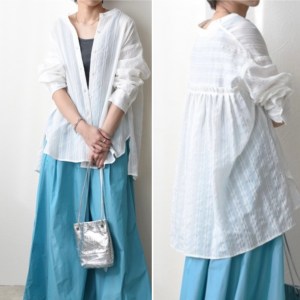 ストライプバックプリーツブラウス💕 少しだけ透け感のあるストライプのシアー素材がお洒落なブラウス💕 バックの切り替えプリーツのデザインで後ろ姿もGOOD⭐️⭐️⭐️ サイドスリットと前後差など、スッキリ見えるテクニック満載のブラウスは、今季のベストのコーディネートにもお役立ち😍 ヒップがちょうど隠れる着丈で安心感あり💕 ブラウス ¥7900+TAX 素材 レーヨン66%,ナイロン24%,ポリエステル10% 2022年3月22日