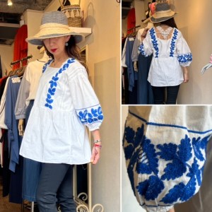 刺繍ブラウス💕¥8900+TAX 白にブルーの爽やかな刺繍が素敵なコットンブラウス💕😍 ハワイっぽい雰囲気でテンションが⤴️一着 ラグジュアリーな刺繍なのにプチプラも嬉しい ヒップが隠れる着丈💕 一点のみの入荷となっております 帽子 ¥4900+TAX モデル身長 168cm 2022年3月23日