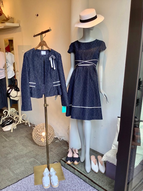 総レースのワンピースとJK💕 シックな濃紺にアイボリーのラインが効いたデザイン💕 キチンと感のありのフェミニンワンピースです ジャケットの胸のリボンはブローチで取り外せるので、用途によってお使いいただけます⭐️⭐️⭐️ Mサイズ ポリエステル素材 ワンピース ¥22000+TAX 日本製🇯🇵 ジャケット ¥23000+TAX 日本製🇯🇵 2022年4月5日