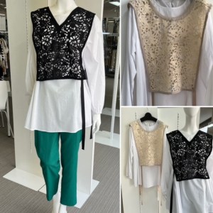 ブラウス✖️レースベスト💕¥12000+TAX🌸 綺麗なレースのベストがセットされた今年らしいトップスが本日到着いたします💕 カラーパンツに合わせて今年らしいコーデを楽しんでみませんか? インナーのブラウスは、シンプルなチュニックブラウスで万能に着回せるアイテム💕💕💕 ベストカラーがブラック、ホワイト、ベージュの3カラーで到着します😃🌸 自由が丘はお散歩日和です💕 カフェでのんびりお茶などしにぜひお出かけくださいませねーーー 2022年4月9日