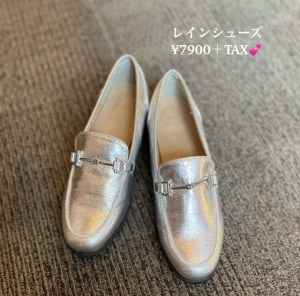 レインシューズ シルバー ¥7900+TAX とっても履きやすいレインシューズがお洒落なシルバーで到着しております💕 春先から梅雨にかけて、雨は頻繁に降る予定ですので、お洒落なレインシューズは必需品ですね。 36〜39のおサイズで揃っております。 2022年4月16日