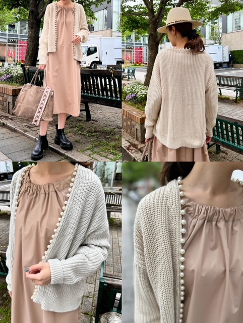パール付きカーディガン¥14300✨ 大人気のパール付きカーディガン☺️✨ まだまだ肌寒いこの季節、あると重宝する一枚です🌷 ベージュとグレーの2色ございます✨ パール付きカーディガン¥14300 2022年4月18日