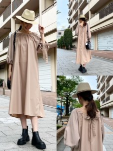 ワンピース¥13200✨ ふんわりしたお袖と首元のデザインが可愛いワンピース👗 ニット素材のドッキングになっております。 ワンピースとしてはもちろん、チュニックとしてパンツを合わせるのもおすすめです😊 ワンピース¥13200 2022年4月18日