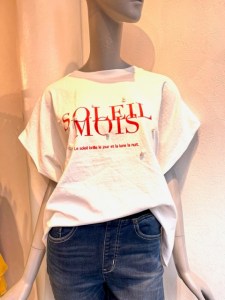ロゴフロッキートップス💕 ¥4500+TAX 人気のボックスシルエットのテイシャツ ✖️ デニムのコーデ 素材はコットン100% もちろんホームクリーニングOk💕💕💕 着るだけでサマになる⭐️ どんなアイテムとも、すっきりと合わせやすいですよぉ〜 こちらのホワイトとブラックの2カラーとなっております💕 2022年5月13日