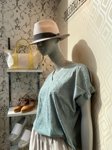 レーストップス💕 上質なレースの生地はしなやかなコットン100%💕爽やかなミントグリーンが素敵です 白、ネイビー、ベージュ、ブラウンなどのボトムスと相性GOOD💕💕💕 トップス ¥8900+TAX 2022年5月15日