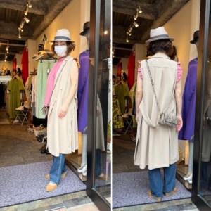ロングジレ✖️デニム💕 人気のパール付きのロングジレ+デニムのコーディネートはいかがでしょうか? インナーにはピンクのフリルブラウスで華やかさをオン💕 スポーティーに着こなすときには、ロゴTなどもGOOD💕 足元はデニムに合わせて、キャメルのウエッジソールでスタイルアップ⤴️⤴️ モデルはお客様の奈菜さんにご協力頂きました💕 リコノクローシェ では、お一人お一人に合わせたパーソナルスタイリングをご提案させて頂きます💕 お気軽にご相談くださいね💕 ロングジレ ¥16000+TAX デニム ¥13800+TAX ウォレットバック ¥5500+TAX 帽子 ¥14500+TAX 2022年5月16日