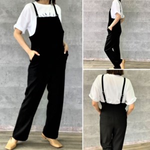 メンズライクなサロペットを女性らしく見えるよう、とろみ素材でシルエットにこだわり仕上げられた大人のサロペット💕