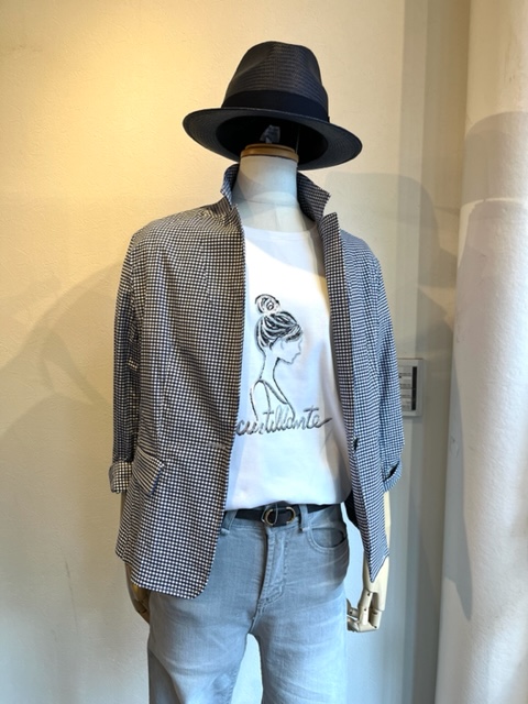 ギンガムチェックのコンパクトなジャケットを合わせたコーデはいかがでしょうか?