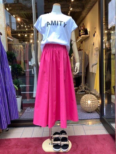 綺麗なカラースカートは、ピンクの他に高級感のある麻調のベージュがございます