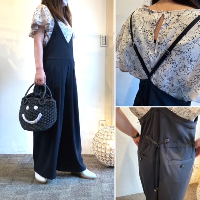 サロペットパンツ💕 スッキリしたVネックの大人っぽいオールインワン 💕を花柄ブラウスでコーディネートしてみました。 肩紐の調節で小柄さんもスッキリ着られるレアな商品⭐️⭐️⭐️ シワになりにくいポリエステル✖️ポリウレタン素材で伸縮あり💕 とっても楽ちんな着心地です カラー ブラックのみ サロペットパンツ ¥23000+TAX ブラウス ¥8900+TAX バック ¥8500+TAX サンダル ¥15000+TAX コメントは受け付けていません。
