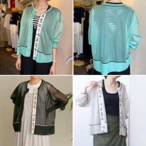 ロゴ入りカーディガン ¥9800+TAX💕 Eimee Lawの新作カーディガン シアーな素材にお洒落なロゴテープが効いたデザインカーディガン💕 真夏も大活躍してくれそう ミントグリーン、ブラック、ベージュの3カラー どんな着こなしもこれ一枚でオシャレコーデに変身です 2022年6月8日