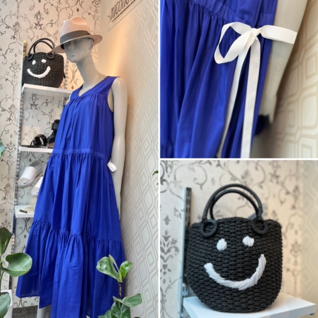 ロイヤルブルーのワンピース💕 シルクタフタのような質感がとっても素敵なコットン素材のワンピースはいかがでしょうか? 軽くしなやかな着心地とパッと華やかなカラーが目を惹きます💕🎉😆 ロイヤルブルー、アップルグリーンの2カラーで到着しました💕 ブラック、ブラウン、ピンクはお取り寄せとなります。 気になるお客様はお早めにチェックされてくださいね フリーサイズ ワンピース ¥19000+TAX ニコちゃんバック ¥8500+TAX 2022年6月11日