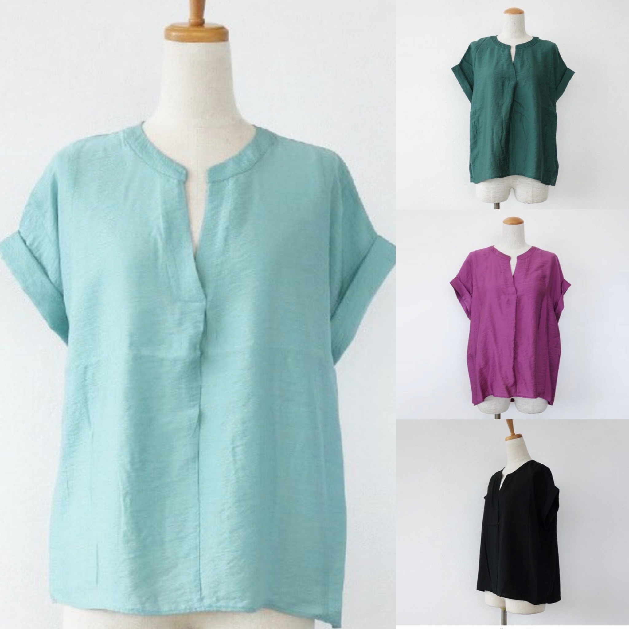 カラートップス💕¥7900外税 フロントはポリエステルシフォン✖️バックはカットソー素材のデザイントップス💕 ミントグリーン、グリーン、パープル、ブラック、アイボリーなど本日再入荷致します💕 人気カラーは即売れしてしまうので、お早めにチェックされて下さいね💕🙌 2022年6月21日