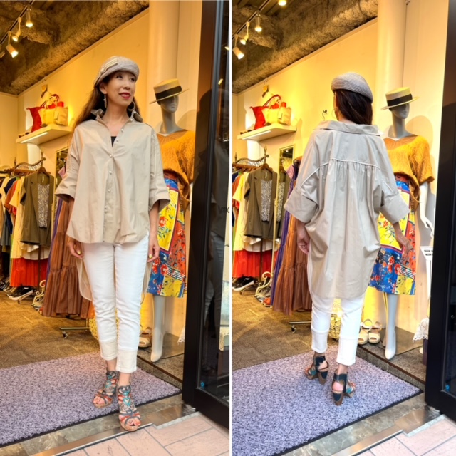 パールボタンシャツ💕再入荷です パールボタン&バックテール&裾チュール切り替えと、お洒落デザイン満載のバックシルエットシャツが最終入荷となりました💕 今回、特別プライスとして30%オフにて販売させて頂きます。 お写真のベージュの他に、ホワイト、ブラックの3カラーで入荷致しました。 限定数のみとなりますので、お早めにチェックされてくださいね。 シャツブラウス ¥13800+tax SALE ¥9660+tax パンツ ¥11800+tax XS〜Lサイズ展開あります 2022年8月3日