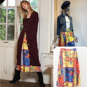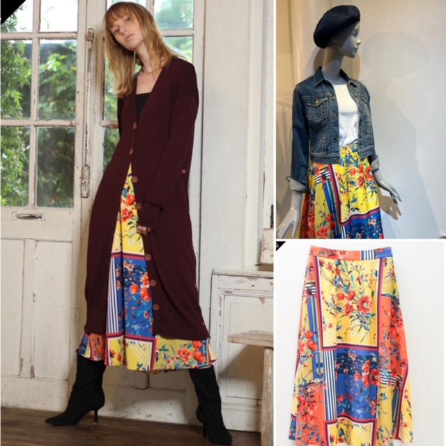 パネルプリントの花柄スカート💕 華やかなパネルプリントが素敵なフレアスカートは、ウエストラインがすっきり見える⭐️⭐️⭐️嬉しいデザイン バックゴム仕様で履き心地GOOD 華やかなプリントは、スリットからチラッと見せたり、Gジャン.ライダースと合わせても素敵です😍 スカート ¥15800+tax💕 Gジャン ¥14800+tax💕 ベレー帽 ¥3900+tax💕 2022年8月28日