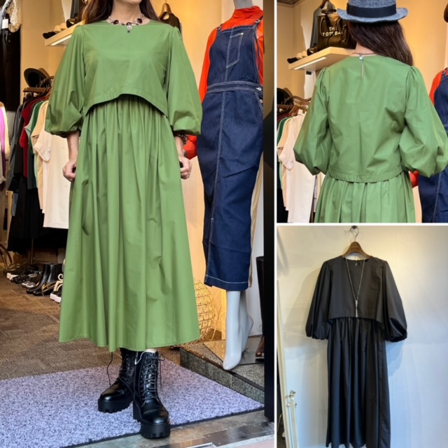秋色のワンピース💕💕入荷しました きれいなグリーンのワンピースはスカートにトップスが付いたドッキングのワンピースです💕 蒸し暑い9月から春先まで大活躍してくれる、袖ありのデザインがGOOD💕 ポリエステル80✖️コットン20の素材ででシワになりにくいのも嬉しい🎉🎉🎉 グリーン、ブラックの2カラーです ワンピース フリーサイズ ¥16000+tax💕 ブーツ ¥6900+tax 大人気のブーツはお早めにゲットされて下さいね💕 今のところ今季の最安値です 2022年9月2日