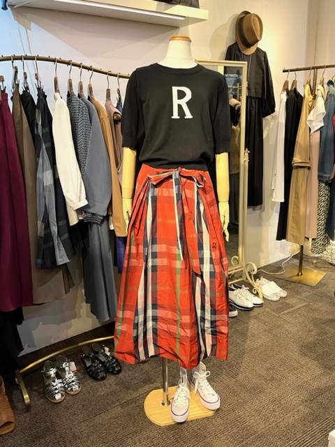 マドラスチェックのスカート💕 キュートなチェックが素敵なスカートは、ワンポイントが効いた黒のコンパクトなニットを合わせてスッキリコーデ💕 秋は、夏みたいに暑かったり、はたまた、急に冷えたりするから、肘まであるこんなトップスがお役立ちです💕 コンパクトなシルエットなので、小柄さんに特にお薦めです💕 ニット ¥9500+tax スカート ¥14000+tax お色違い パープル❎グリーンのチェック 2022年9月2日