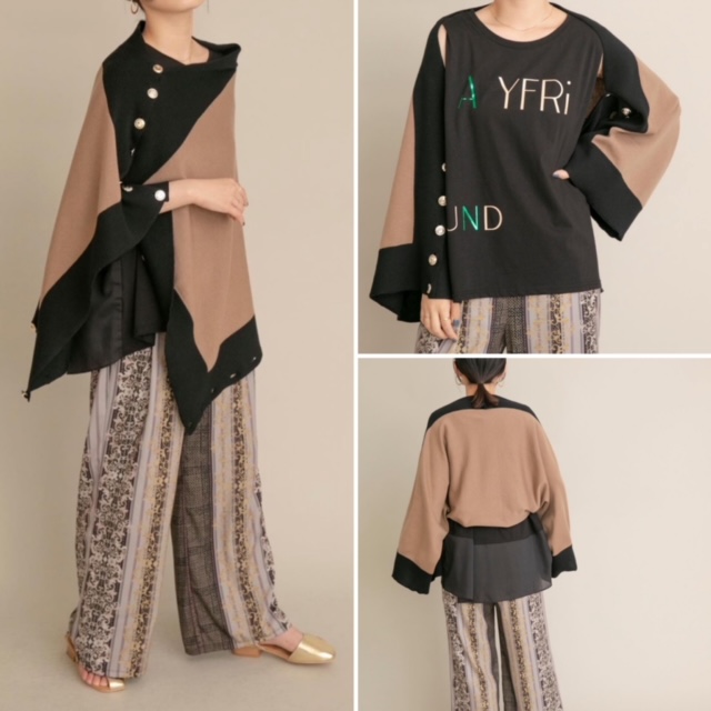 3WAYポンチョストール💕¥7900 +tax Eimee Lawのデザイントップス💕はめちゃくちゃお洒落なボタンが散りばめられたポンチョストール💕😍 ポンチョ、カーディガン、ストールの3WAYで着こなせる優れもの お写真のブラック✖️ブラウンと、ベージュ✖️アイボリーの2カラー ラスト各一点となりました💕💕💕 サラサラの滑るような肌触りです💕 BLACK✖️BRAWN BEIGE ✖️ LVORY 2022年9月14日