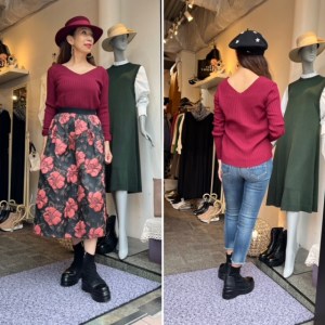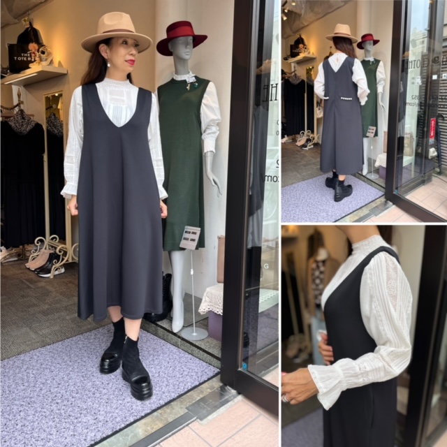 ニットワンピース ¥7900+tax 😍 緩やかなAラインのニットワンピース にスタンドネックのブラウスを重ねたコーデ💕 とっても軽くて着心地の良いスタイリングです ワンピースは体のラインを拾いにくいAライン⭐️ 小柄さんにもお薦めのコーデです ブラウス ¥3900+tax ワンピース ¥7900+tax ハット ¥7900+tax ブーツ ¥6900+tax M.Lサイズともあります お得なブーツはお早めにチェックしてくださいね 2022年9月24日
