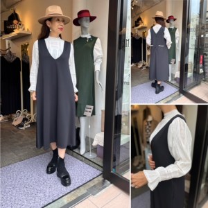 パールデザインジャンバースカート💕 深めのVネックでスッキリした印象のジャンバースカート💕 ヒップラインの上に付いたパールのデザインで脚長効果あり😍💕 レースがふんだんに使われたフェミニンなブラウスを合わせて、シックな着こなしに⭐️⭐️⭐️ スッキリしたタートルなどを合わせますとシャープな感じにもお使いいただけます ジャンバースカートはポリエステル、ポリウレタンのお素材でフリーサイズとなっております ブラウス ¥11000+tax ジャンバースカート ¥13000+tax 2022年9月24日
