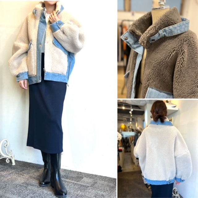デニム切り替えのボアコート😍 驚くほど軽い⭐️デニム切り替えのボアコートが入荷しております💕 沢山のボアコートがある中で、こんなおしゃれなコートはなかなか見つからない⭐️⭐️⭐️ 極暖⭐️、極軽量⭐️、デザイン性⭐️ ヘビロテ間違いなしです 上質な大人のカジュアル楽しんでみませんか? お出かけが楽しくなりそう⤴️⤴️⤴️ コート ¥32000+tax スカート ¥4900+tax ブーツ ¥10000+tax 特別価格のダンボールニット素材のタイトスカートはそろそろ完売となりますので、お早めにーー 2022年10月8日