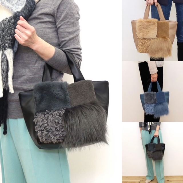 4種類のエコファーのパッチワークが印象的なトートバッグが入荷しております。