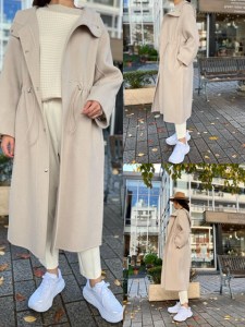 コート¥53900 滑るように滑らかなウール素材のフードコート🤍☺️ ウェストのドロストと大きめのフードのデザインで、カジュアルさをプラスした大人のラグジュアリーなコートです❣️ コート¥53900 コメントは受け付けていません。