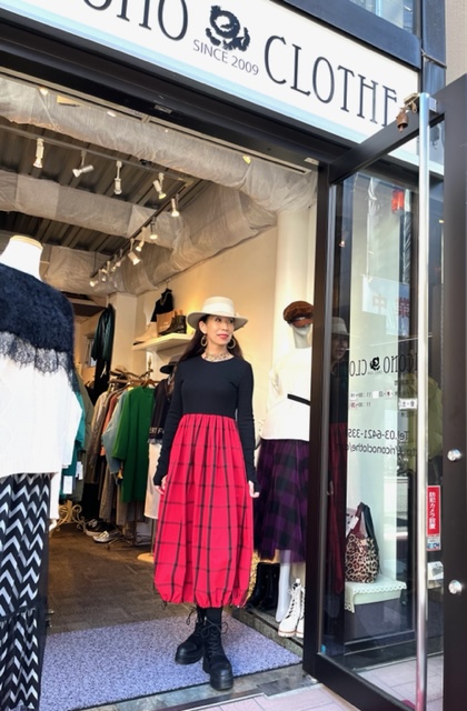 Black✖️Redのチェックワンピース💕 トップスはカットソーで、スカートはチェックのタフタ素材のワンピース💕 裾はドロストでコクーンの形にもなる優れもの⭐️⭐️⭐️ 春先4月位まで着用可能ですよん お色違いは、ブラック✖️イエロー系のチェックがございます ワンピース ¥15000+tax💕 2022年11月14日