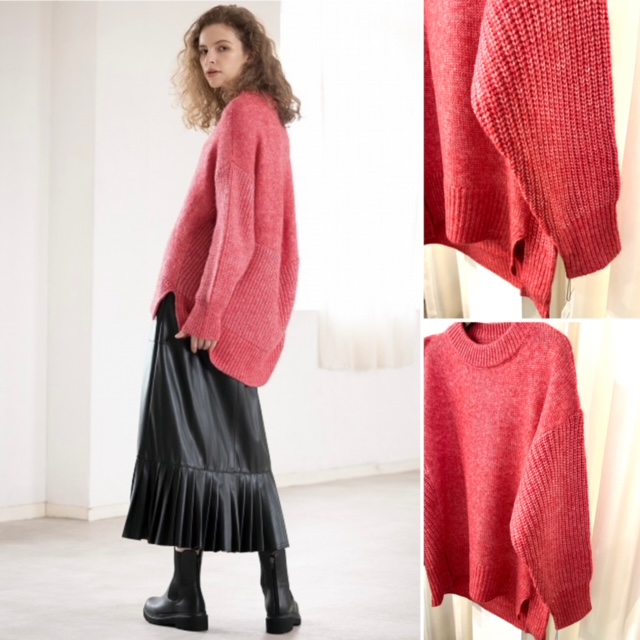 シャーベットピンクのニット💕 いちごシャーベット🍓のようなミックス調のカラーが可愛いニットプルオーバーが到着しました💕 アルパカ混で、ふんわり暖かくてとってもソフトな着心地です⭐️⭐️⭐️ なかなか無いお洒落なカラーと、合わせやすい前後差のあるデザインです ニット ¥9900+tax ・ポリエステル 41% ・アクリル 40% ・毛 12% ・アルパカ 7% B-60 L-72 2022年11月23日