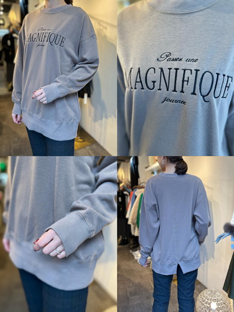 厚すぎない裏毛素材のスウェットトップス。 フロントのロゴとバックのスリットがポイントです✨