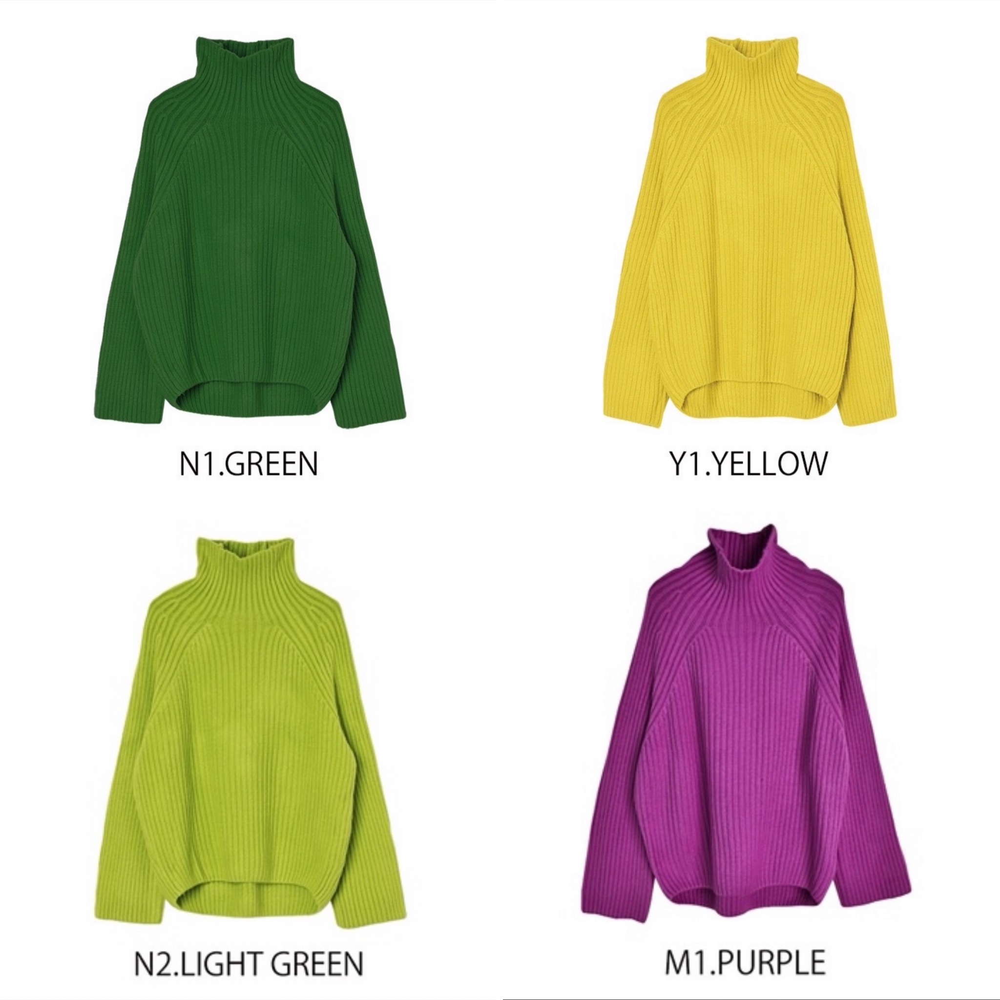 デザインカラーニット⭐️⭐️⭐️ めちゃ綺麗なカラーと絶妙なデザインで大人気のリブニット💕 立ち上がりのあるネックライン、前後差のあるヒップが隠れる着丈と文句無しの1着⭐️⭐️⭐️ グリーン、パープル、イエロー、アップルグリーン、ラベンダーなどが揃っております 春に向けて一枚ぜひいかがでしょうか? フリーサイズ 着丈 60/63 身幅 116 アクリル90 ナイロン10 2023年1月5日