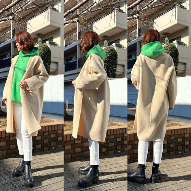 コート¥30,030 優しいアイボリーベージュのコートは、ウール75%で軽くて暖かく、さっと羽織っていただけます✨✨ ウール75%ナイロン25% コート¥42,900→¥30,030 2023年1月10日