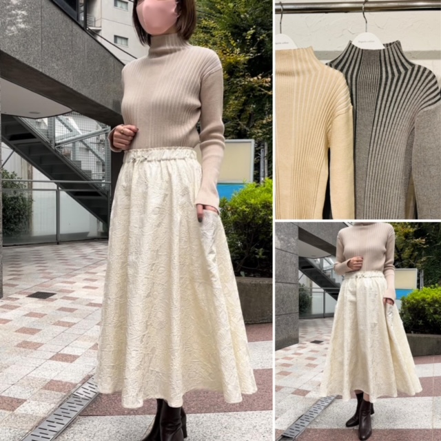 アイボリーコーデ💕 リブタートル💕 ¥10000+tax 30%オフ ¥7000+tax 非ウール素材のランダムリブトップスは、体のラインを拾わない、とっても着心地が良いアイテムです。 ベージュとグレーの2カラー 着丈 60cm レーヨン50 ポリエステル 28 アクリル 22 スカートは2月再入荷待ちです 2023年1月14日