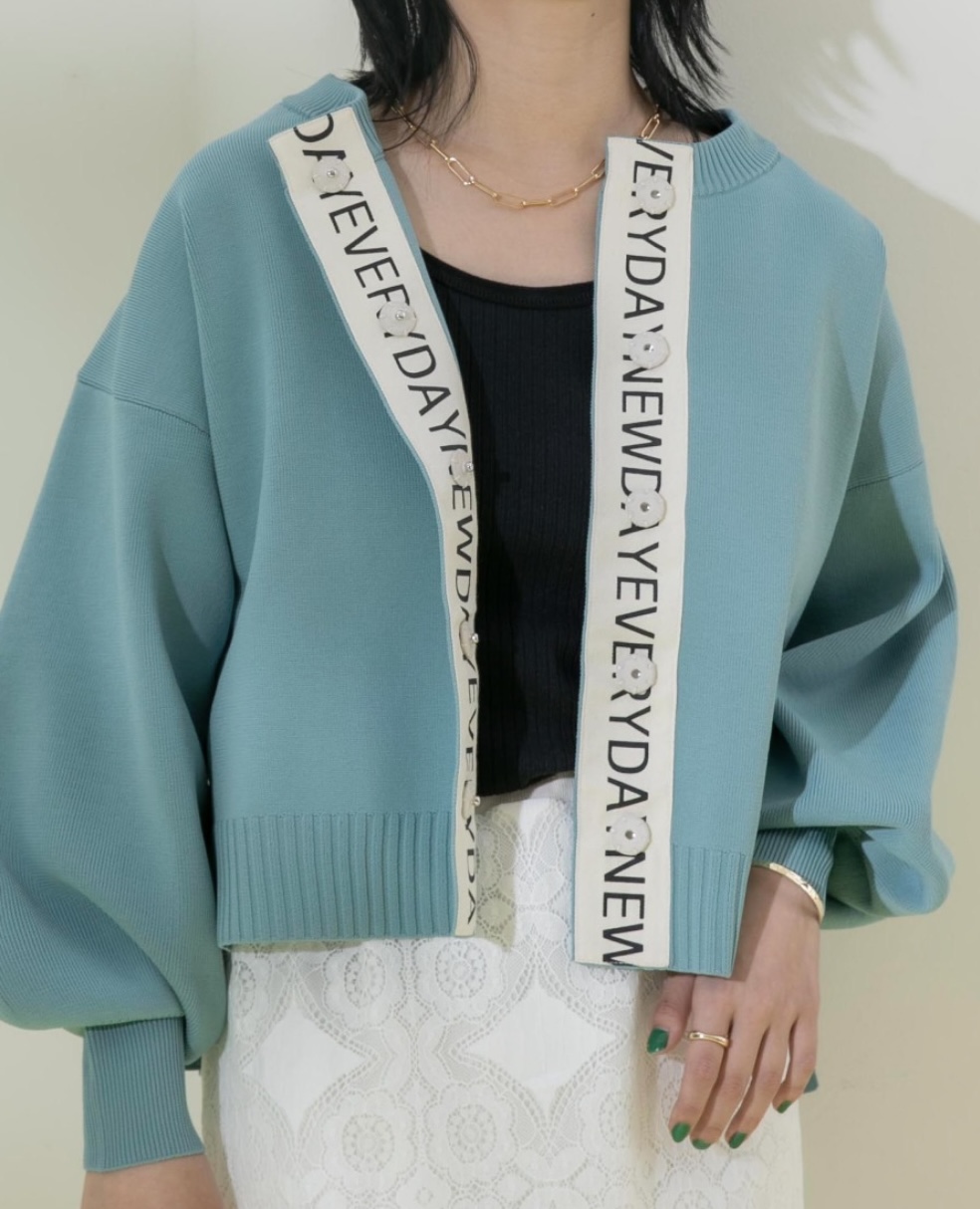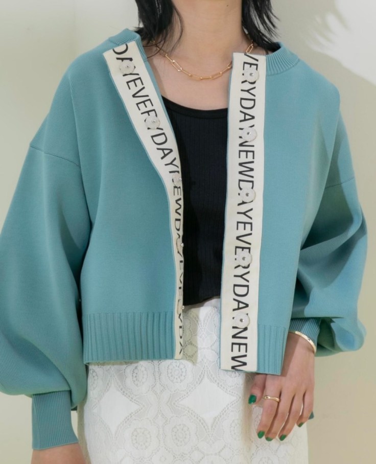 ロゴテープカーディガン💕 目の詰まったゴム地の綺麗な目面で、伸縮性も良く着心地良いカーディガン💕 前開きで着るのは勿論、ボタンを少し開けてロゴテープを覗かせても◎ どんなスタイリングにも合わせやすく、着回し抜群の万能アイテムです。 着丈が短めのお作りなので、ハイウエストのボトムやスカート、ワンピースなどの合わせがgood, お写真はサックスブルー で、他にアイボリー、ブラックが到着しております ロゴテープカーディガン ¥9800+tax💕 ポリエステル100% 着丈54cm バスト114cm 2023年1月21日