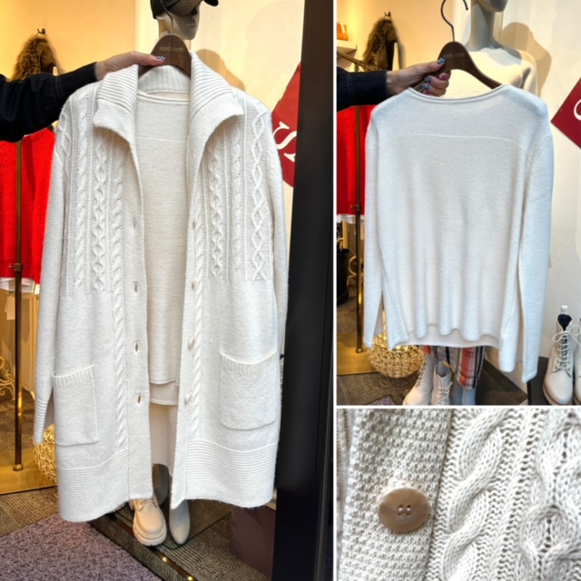 ニット✖️ニットカーディガン 💕2Pセット 上質なウール70% 混紡のニットアンサンブルがとってもお買い得です⭐️⭐️⭐️ 軽くて暖かい💕ニットカーディガンは、これから春先にサッと羽織ってお洒落な1着です 春らしいアイボリーとライトグレーの各一点のみ ぜひこの機会にいかがでしょうか?😃🙌💕 ニットアンサンブル ¥12000+tax 30%オフ🎉🎉🎉 ¥8400+tax😍 フリーサイズです 2023年1月23日
