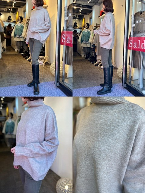 ニット¥11000 パンツ¥11,264 しなやかな肌触りのタートルネックニット🧶 オーバーシルエットで腰回りもカバーしてくれます 首元も窮屈感のないタートルです💕 ニット¥11000 パンツ¥14,080→11,264 2023年1月23日