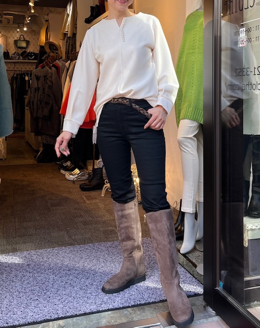 ニットでもブラウスでも、どんなアイテムを合わせても、綺麗に決まります