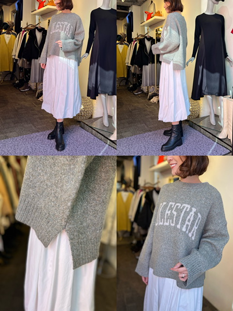 ニット¥6,900 スカート¥10,450 ゆったりしたシルエットと胸元のロゴがポイントのニット🫧 スカートはウエストゴムで楽ちんです💕 長すぎない丈感なので小柄さんにもおすすめです💕 ニット¥6,900 スカート¥10,450 2023年1月26日