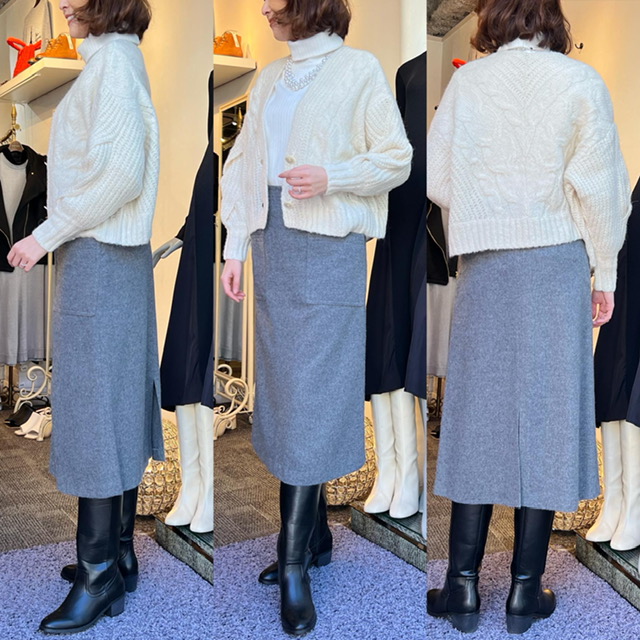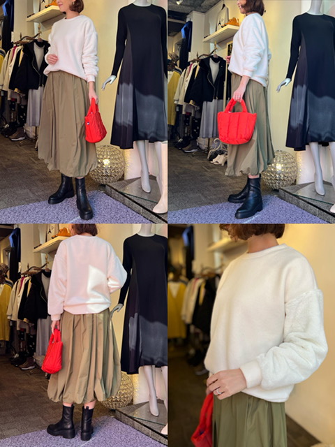 ニット¥5,390 スカート¥10,450 異素材ミックスのボリューミーなニット💕 新入荷のスカートに合わせました😉 バッグは小ぶりだけれどポイントになるビビットカラー❣️ ニット¥5,390 スカート¥10,450 バッグ¥3,729 2023年1月28日