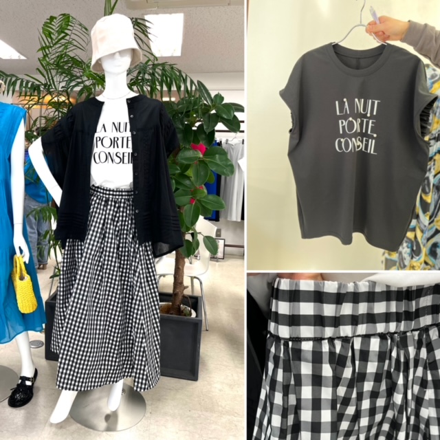 ギンガムチェックスカート💕 春一番のギンガムチェックスカートが入荷してきました💕 爽やかなギンガムチェックのタフタのスカートは、一年中大活躍のアイテムです ウェストは総ゴム仕様で、フリーサイズ💕 ポケットあり 一足お先にいかがでしょうか? スカート ¥12800+tax💕 Tシャツ ¥5900+tax💕 2023年1月15日