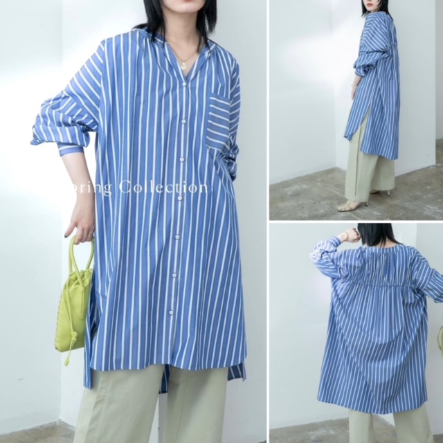 シャツワンピース💕Eimee Law 爽やかなストライプのシャツワンピースが入荷しました💕 綿50ポリエステル50 のシワにならない軽量素材です 前後差のあるサイドスリットが着こなしを軽くして、着痩せ効果 大💕🥰 初夏には羽織としてもお使いいただけます💕 ワンピース ¥9800+tax フリーサイズ 綿50 ポリエステル50 2023年2月4日