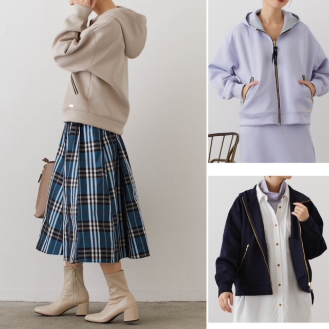 ダンボールニットのパーカー💕¥6900+tax ほど良いハリ感とほんのりしたツヤ感のキレイ目ダンボール素材が、上品な印象のフードZIP🌸 大きすぎなく、ほど良いサイズ感がカジュアル過ぎず、キレイ目スタイリングが叶う1枚。 使いやすい定番的アイテムなので、デイリーに活躍してくれる重宝アイテム。 スライダー先には、ブランドロゴリボンがお洒落なアクセントに🌸 コートインに着てもかさばりません。 同素材・カラーで、スカートもセットアップで着るのもオススメです💕 サイズ フリー バスト 111cm 着丈 57cm ゆき丈 78.5cm 素材/本体:ポリエステル76% レーヨン18% ポリウレタン6% 別布:ナイロン100% 2023年2月5日