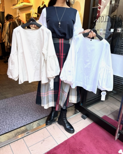 配色デザイントップス💕✖️タフタスカート 上質なコットン素材のデザイントップスが到着しました💕 比較的コンパクトなシルエットで、スカート合わせもGOOD⭐️⭐️⭐️ 小柄さんにもお薦めの万能なトップスです 薄手のコットン素材のお袖で、初夏も快適にお使いいただけます ネイビー✖️ホワイト、ホワイト✖️ホワイト、アイボリー ✖️アイボリー の3カラー トップス ¥12000+tax スカート ¥11800+tax 2023年2月5日