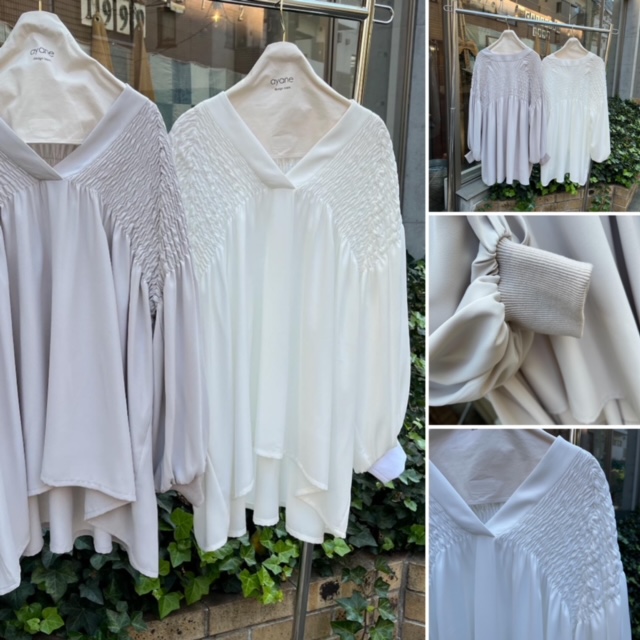 シャーリングブラウス ¥15800+tax💕 昨年秋の大人気のブラウスをバージョンアップ⤴️ フロントの着丈を長くして、更にスッキリしたスタイリングが叶います。 とろみのある上質な素材感で、大人女子にお薦めです。 ホワイト、グレー、ベージュの3カラーです 2023年2月6日