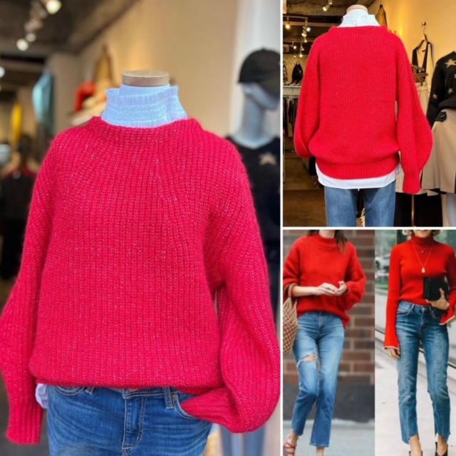 赤いニット40%オフ 赤✖️デニムコーデ 綺麗な赤のニットは着ているだけで顔色良く元気そうに見えるから、一枚は持っていたい ふんわりとした優しい糸で編まれた上質なニット 赤とアイボリーで各一枚限りとなりました。 40%オフの今がお買い得ですよん⭐️⭐️⭐️ ニット 写真左、右上 SALE ¥6600+tax 白ブラウスを重ね着しております 右下のスタイリングは参考例です 2023年2月11日