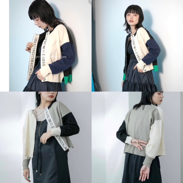 ロゴテープカーディガン💕 メッシュ編みとメリヤス編みをドッキングした、エイミーらしいロゴテープカーディガン💕 ミニマムなサイズ感で、どんなアイテムにも合わせやすい💕 今から梅雨寒い時期まで大活躍してくれそう 限定数のみの入荷となっております カーディガン ¥11800+tax ポリエステル100 2023年2月11日