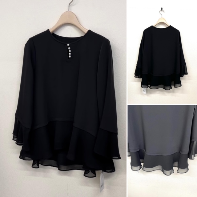 パール付きトップス ¥15000+tax しなやかでとろみ感のあるパール付きのシフォントップス💕 ほぼ皺にならない⭐️⭐️⭐️ 何年経っても綺麗にお使いいただけます ボタンを一つ外して、スッキリしたキーネックとしてもお使いいただけます お揃いのワイドパンツ もございますので、セットアップでの使用が出来るのもGOOD㊗️ 新入学、ご卒業などにもお薦めです お色違いはアイボリー、ライトベージュがございます 前々回のインスタライブで着用動画をご覧いただけます 2023年2月18日